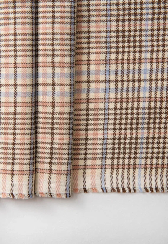 Ткань лён умягченный "клетка розово-голубая" костюмный арт. 887/1 (лен 20% , хлопок 80%)