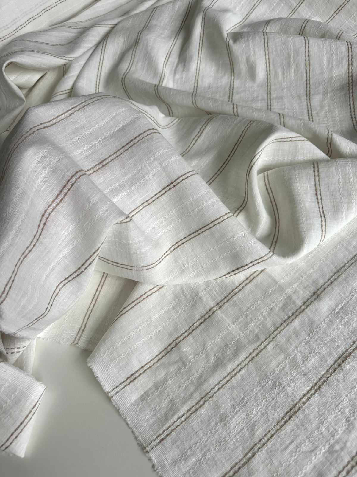 Ткань лен/хлопок "ажурный беж полоса" шир. 158 см. арт. 3550